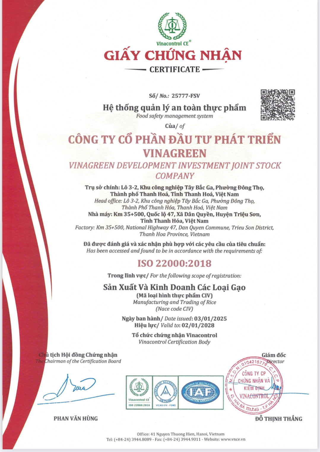 A leading agricultural producer with a 6.5-hectare factory and modern technology lines. Annually supplies over 100,000 tons of rice, 5,000 tons of cereal powder, and 2,000 tons of coffee meeting ISO 22000:2018 standards. Committed to delivering safe, premium products while elevating Vietnamese agricultural excellence in the global market.